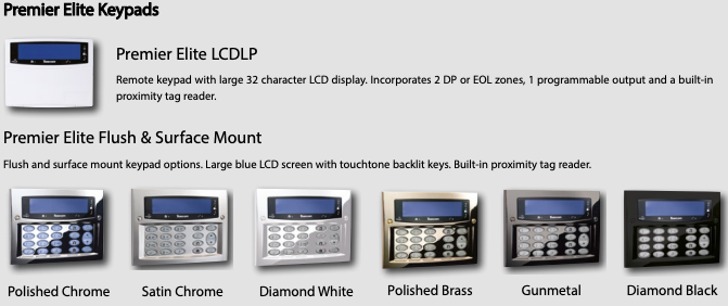 Premier Elite 24 • 8 Zones Expandable To 24 • 2 Areas • 25 User Codes • 500 Event Log Time & Date Stamped • Plug-on Communicators • PD6662: 2010, EN50131-3, Grade 2 Class II (Polymer), Grade 3 Class II (metal)